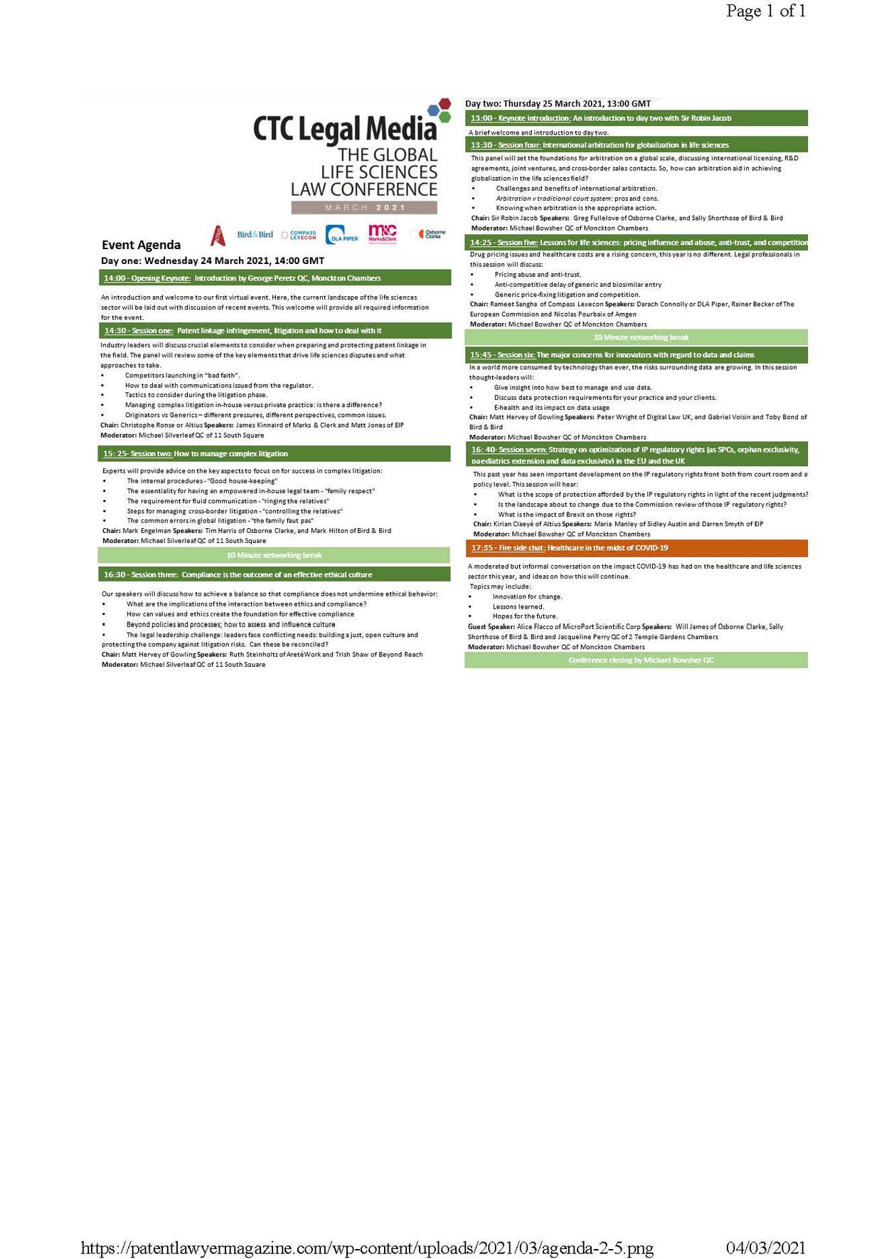 CTC Legal Media: The Global Life Science Conference - Prof. Engleman - Speaker- Wednesday, 24 March 2021