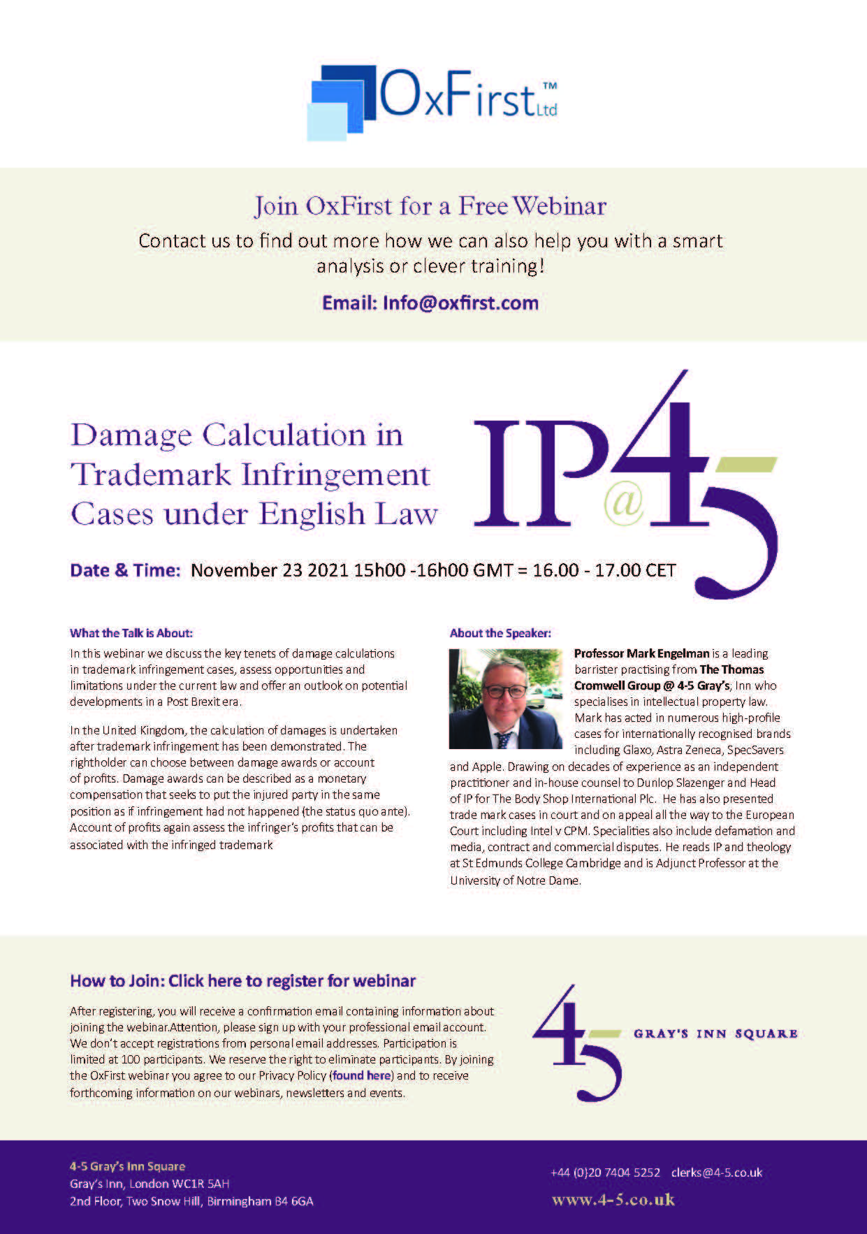 Having begun in research pharmacology, Professor Engelman has worked as an intellectual property barrister since 1989, initially in-house and later at the Bar covering both contentious and non-contentious work in all areas of intellectual property and defamation law. He is a widely trusted intellectual property counsel and has developed an outstanding track record at both UK and European level.